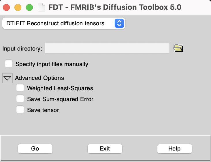 Alternatively, in the FDT GUI, use the top left drop down menu to select "DTIFIT Reconstruct diffusion tensors".