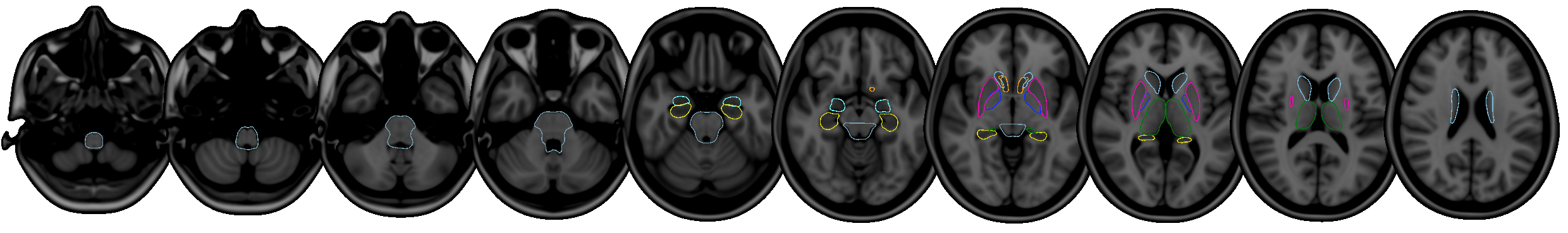 When assessing the registrations, pay particular attention to the sub-cortical structures. It does not matter if the cortex does not always align well, particularly where there are large ventricles, as it is the alignment of the sub-cortical structures which is important for the segmentation.